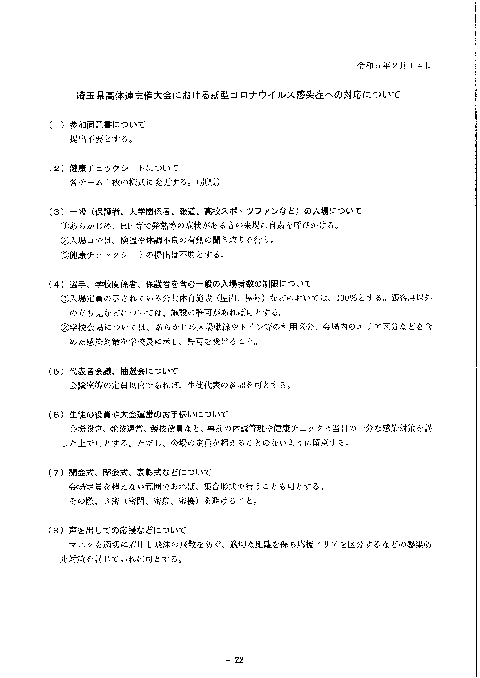 2023/4/6 埼玉県高体連主催における新型コロナウイルス感染症への対応について